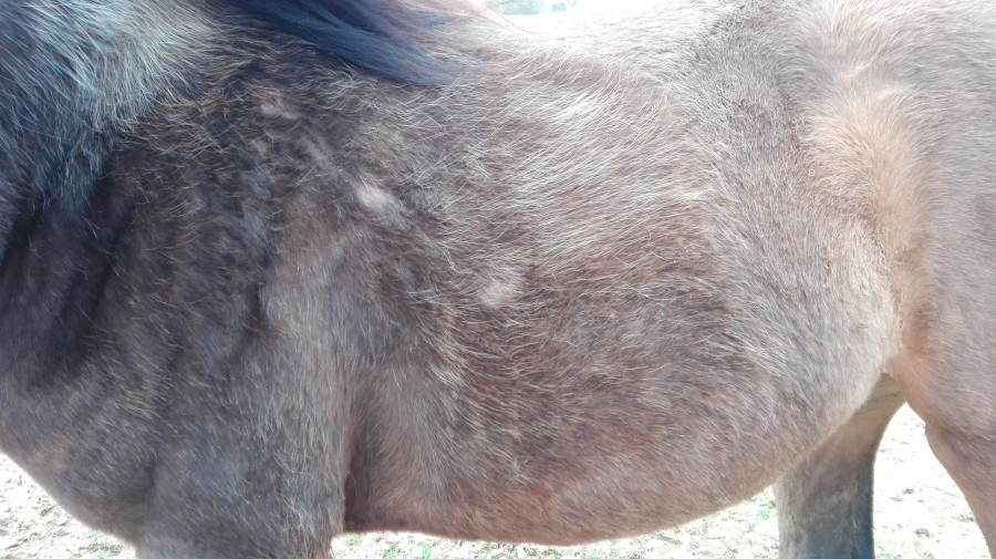 Ensuite, je descends au van pour donner les rations. Le bruit des grains dans les seaux attire les trois vieux. Je leur dispose leur seau, Flash ne veut pas venir, il reste le nez dans le foin. Tant pis. De toute façon, quand les autres ont leur ration, c'est seau de carottes pour lui (je préfère le gérer moi même sur sa ration, et lui amener tous les jours). Au moins, il peut manger tranquillement. Les autres finissent. Je vais au niveau du petit seau d'eau (je fais les quatre coins du pré au moins