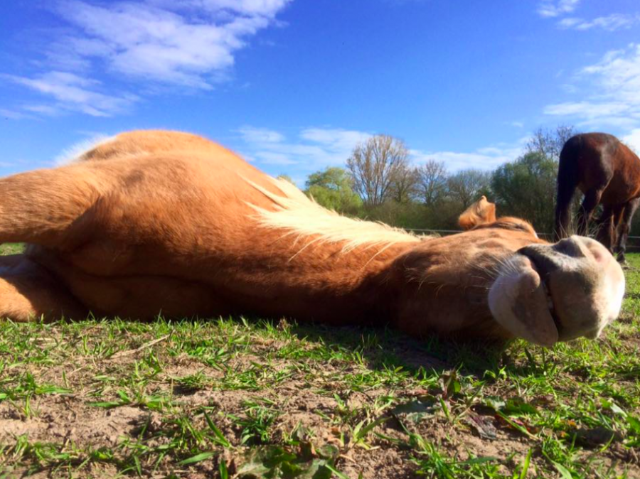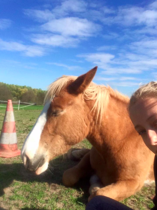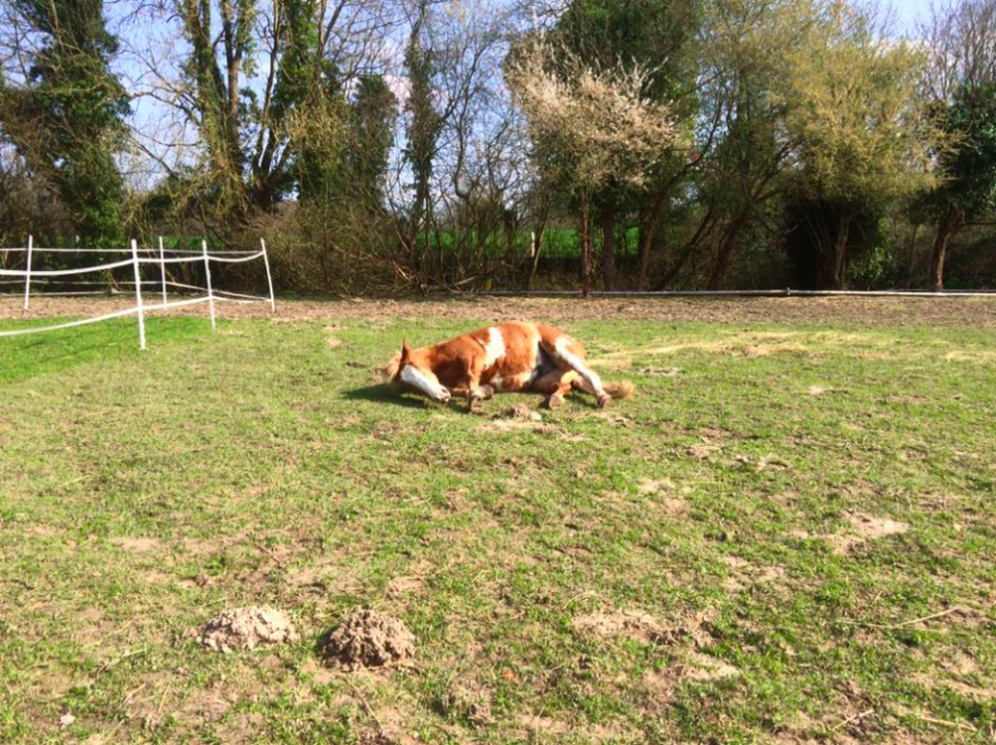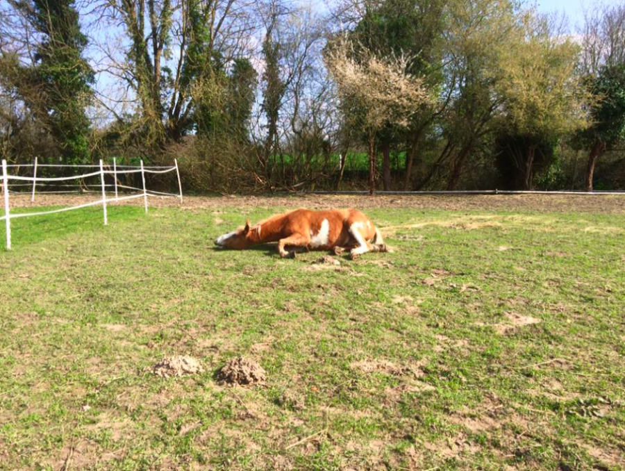 Aujourd'hui, Emgann est enfin venu se coucher à côté de moi dans le pré, il s'est même étendu de tout son long et je l'ai vu rêver! C'était magique! Je n'avais jamais vu un cheval rêver... il a même henni dans son sommeil, un petit hennissement tout doux...