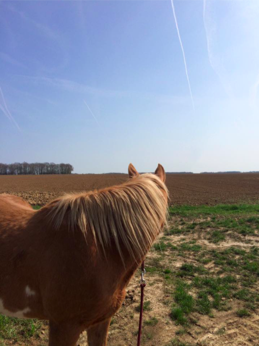 Avec lui j'ai pratiqué l'equifeel mais nous avons surtout fait des balades. Mes premières sorties en extérieur ont eu lieu avec lui. Nous nous sommes fait confiance et je ne me suis jamais sentie plus en sécurité sur un autre cheval, il n'avait peur de rien! Nous partions tous les deux sur les chemins. C'est comme ça que je voyais les choses, pas dans un manège.