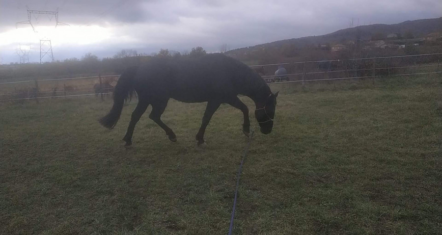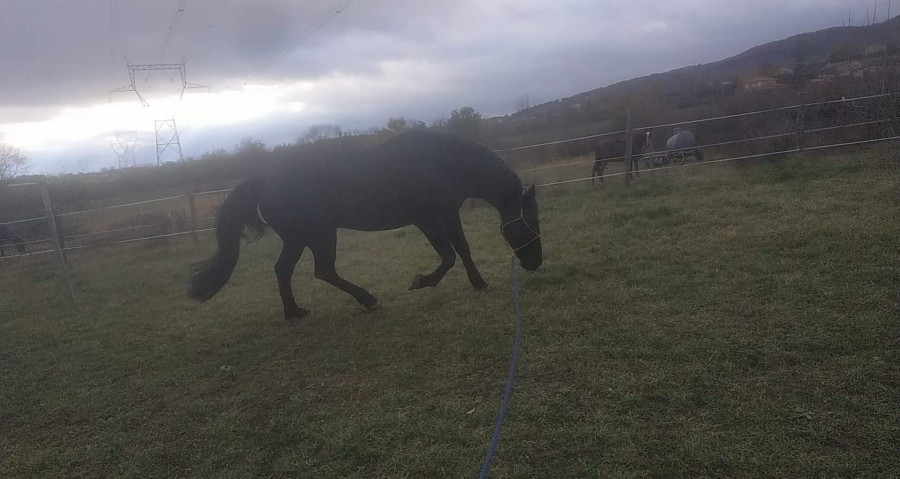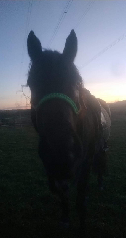 Séance pas trop mal, où j'ai pu demander des passages pas-galop, trot-arret-trot. Il était plutot bien a l'écoute, je l'avais mis simplement en licol étho. Je me suis focalisée sur lui demander un léger pli.