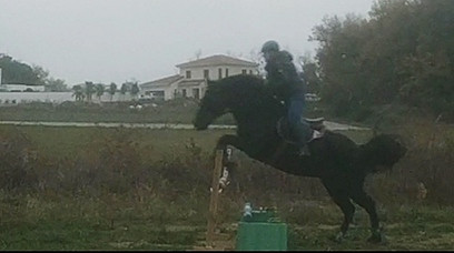 Dimanche, on a été sauté chez Célia. Poney au taquet, vraiment au top, toujours prêt à y aller.... Bon, moi c'est moins bien, j'arrive a peu près à accompagner (faire le geste de me plier devant) quand la foulée vient nickel sinon... pouettttt