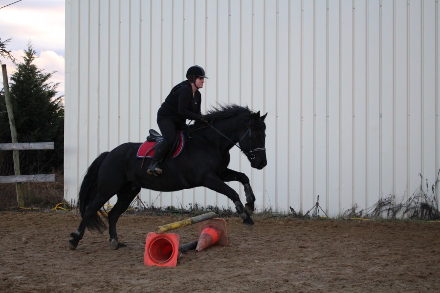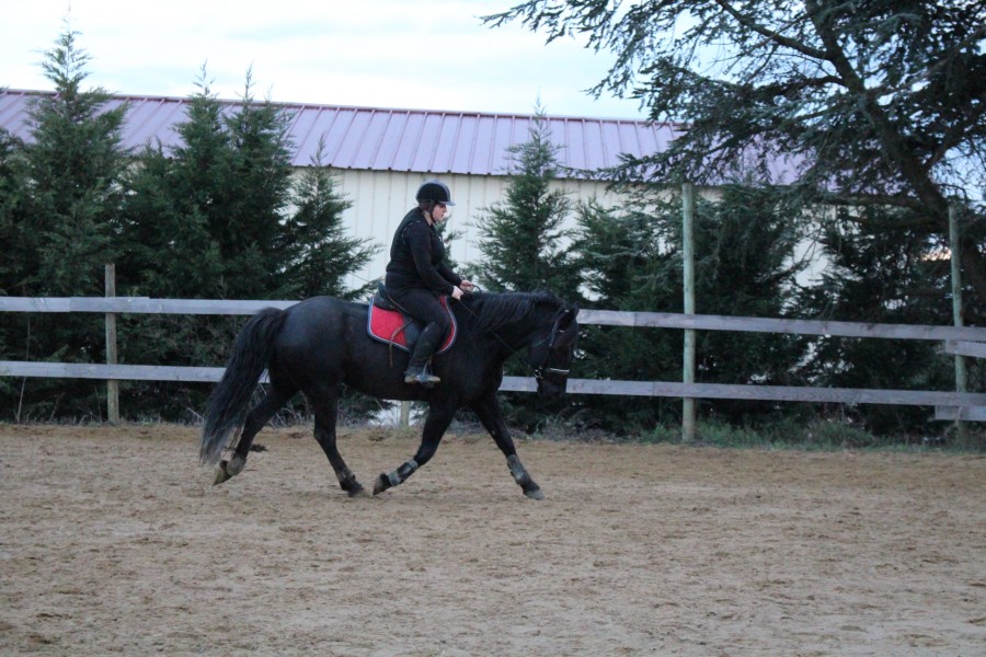 Ca me fait vraiment du bien de me voir en photo. Je suis vraiment pas droite au dessus de mes pieds, j'accompagne mieux mes sauts mais c'est toujours pas encore ca. Et surtout surtout je bloque completement mon cheval avec mes mains, notamment au galop, donc il risque pas d'améliorer son attitude dans ses conditions. Au travail sur le plat!!