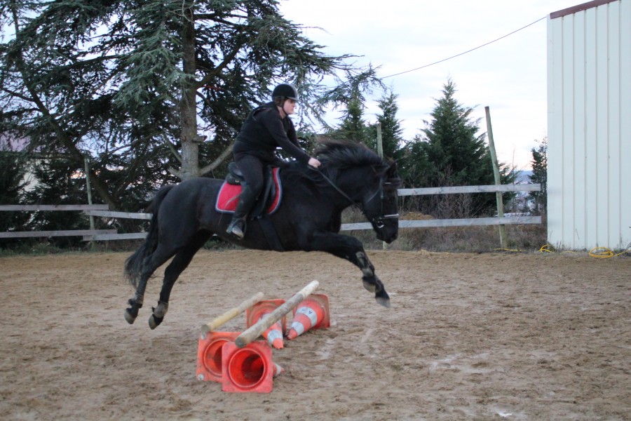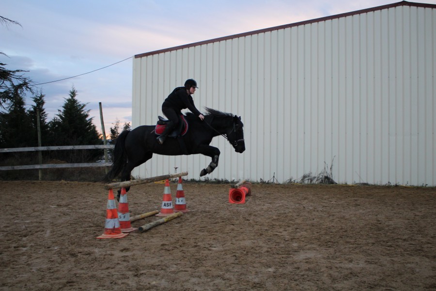 Mais bon, il a quand même bien sauté, il a fait une petite faute de postérieur une fois mais bon vu le boulet qu'il a sur le dos, on lui pardonne! Sinon, enchainer ca allait à peu près on va dire, même si j'ai pas fait plus que deux obstacles de suite.