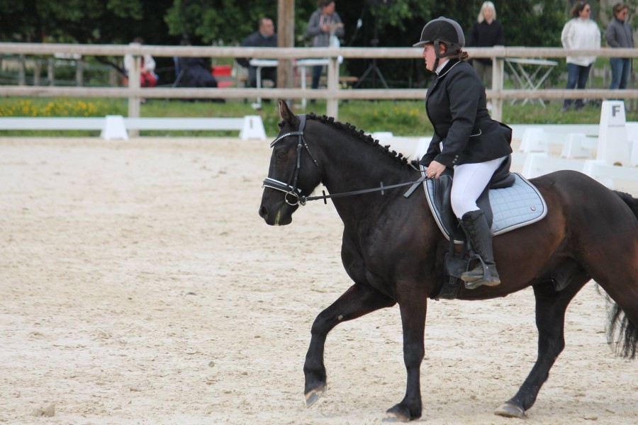 Je fais une erreur (départ au galop une lettre trop tôt) et un départ à faux. Mais sinon la reprise est correcte, Dino est déjà un peu plus rond, Camille trouve la reprise mieux. Quand même pas assez pour le juge, on sort à 61,33. Même pas un 7, bref déçue déçue. Sur cette reprise il m'a été reproché mon manque d'activité alors que franchement il se traînait pas du tout...