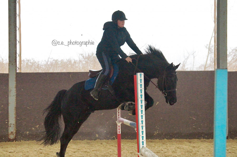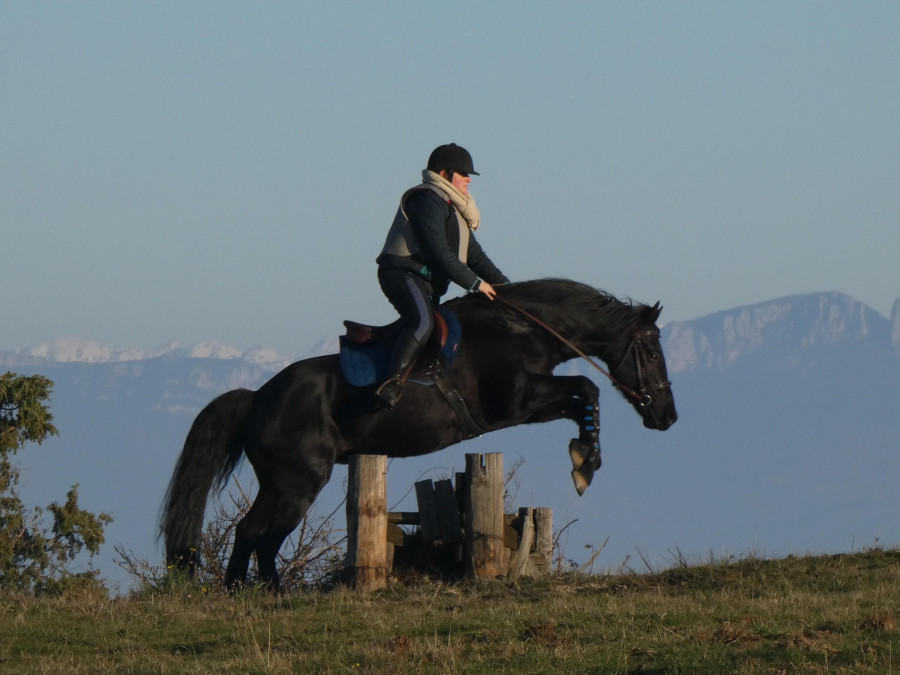 La barre monte, une fois, deux fois, trois fois... Les deux dernières hauteurs nous ont un peu plus mis dans le rouge. C'est tellement facile de dérober et si je ne suis pas super vigilante forcément il passe à côté. Du coup ca m'impose d'être plus actrice dans mes sauts et moins "passagère clandestine". On aura quelques dérobades mais on finira quand meme sur un petit mètre et un cheval qui a bien bossé.