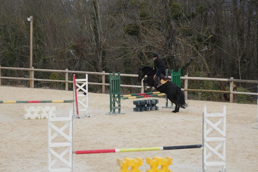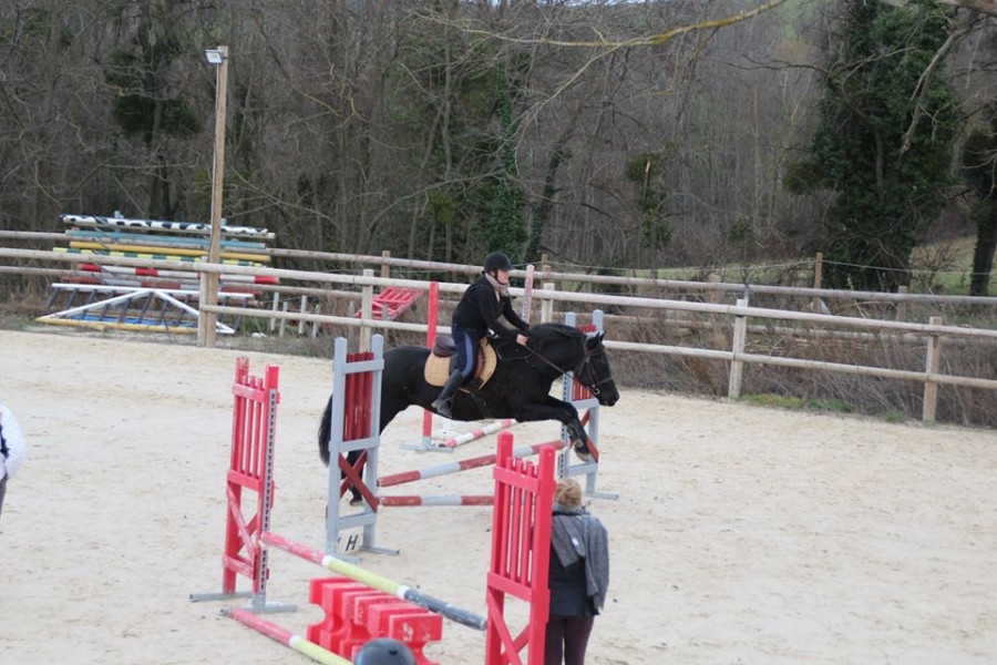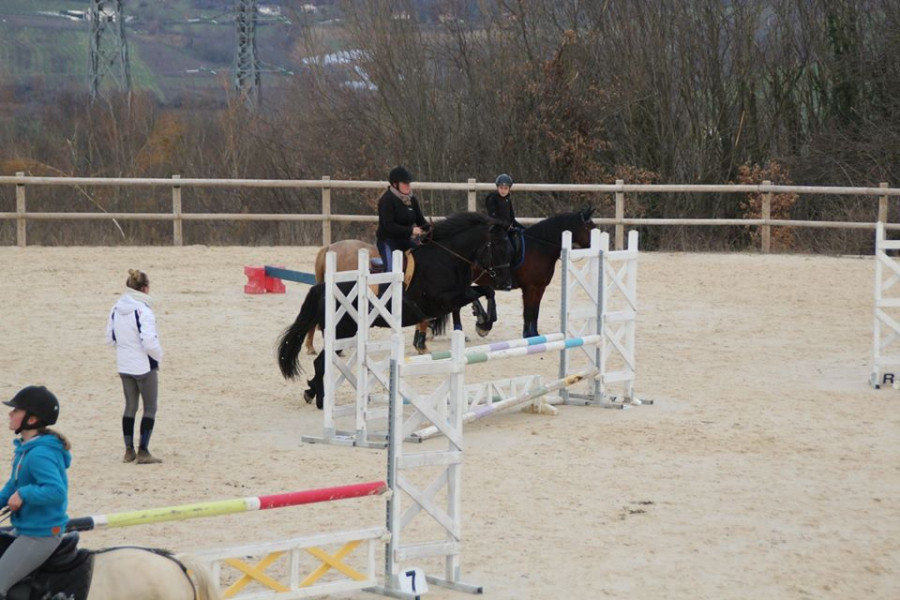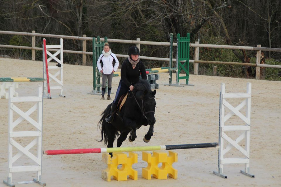 Camille nous proposera un dernier exercice, celui de la dernière fois : volte, épaule en dedans, doublé appuyé. Résultat pas fou mais pas nul non plus, poney grillé moi je n'insiste pas des masses non plus.