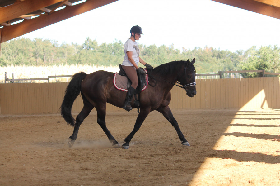 Le trot allongé n'étant pas bon parce que je le laisse trop flottant devant, on enchainera plein plein de trot allongé. Camille dit qu'on a regressé sur ce sujet, je suis un peu triste... Mais on va bosser!
