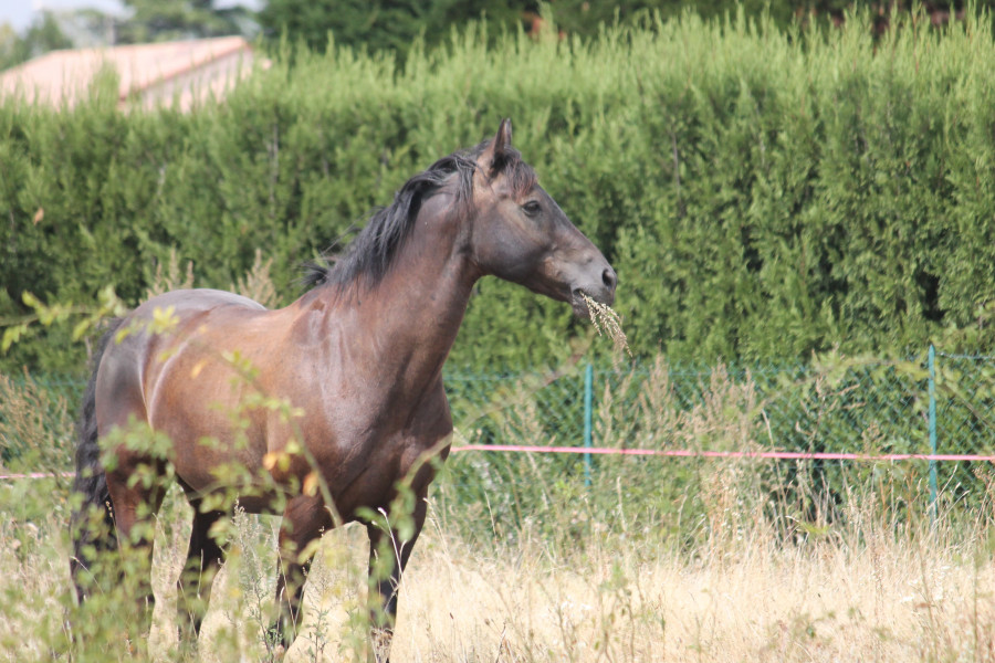 Après le stage, on a changé de pré! Ils sont de retour plus près de la maison et surtout en face de jardin des voisins (= surveillance sait on jamais).