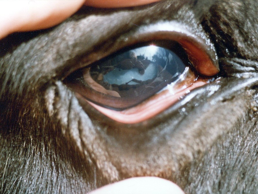 Lors d’irido-cyclites « ophtalmie périodique ou intermittente - fluxion périodique – fluxion lunatique – mal de la lune » après une première phase est marquée par des phénomènes inflammatoires aigus : larmoiement, photophobie, tuméfactions des paupières, inflammation de la conjonctive, myosis (rétrécissement, contraction permanent de la pupille). Puis la cornée devient parfois blanchâtre.