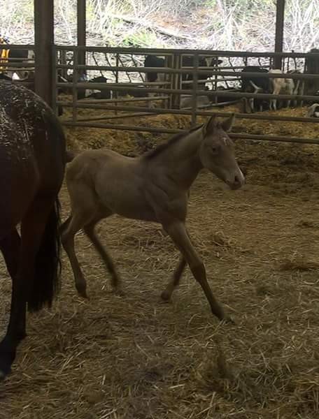 Et sur le post de Horus du fays tu peux voir avec un gène crème en plus du champagne sa donne un poulain trez très clair presque blanc à la naissance