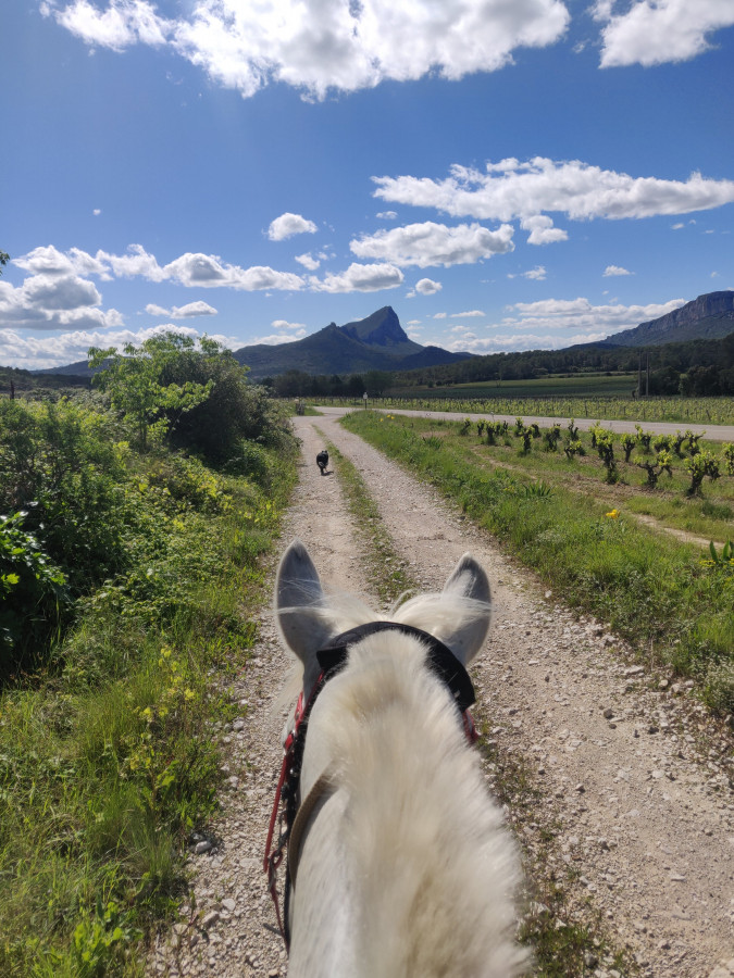 On va se baigner au lac pas loin, on rentrera par les vignobles avec une vue sur le Pic Saint-Loup.