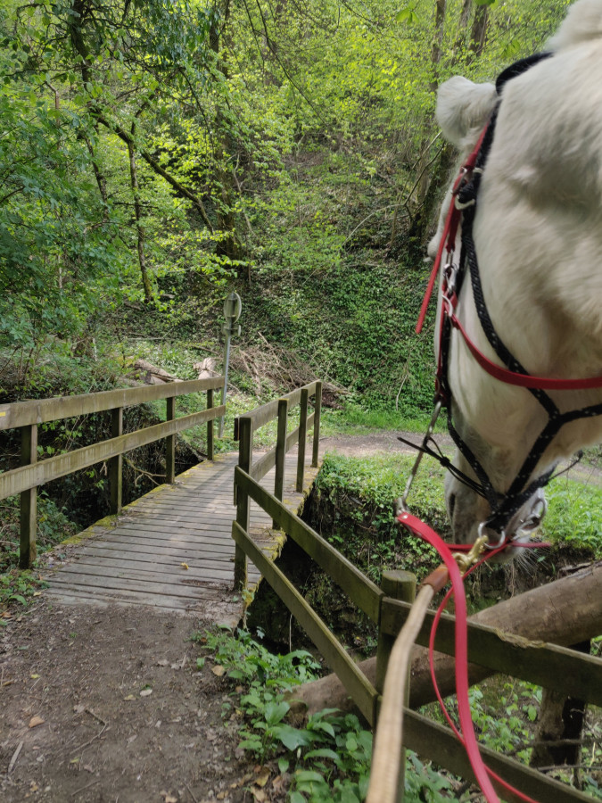 L'après midi, mini tour de 45 minutes aux alentours, juste histoire de sortir, et sous la pluie ! Moi qui pensais qu'Ourias serait fatigué... Me suis fait trainer.