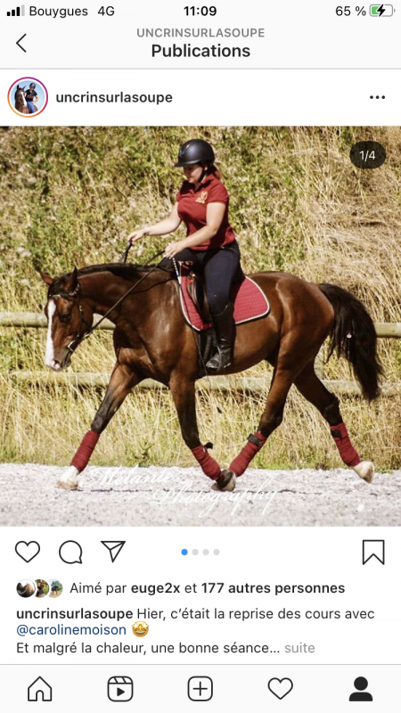 2015 je pars du club et je prends une DP sur une grande ponette pour CSO. Après notre premier concours, jument boiteuse, verdict arthrose, elle ne pourra plus jamais sauter. Bon, des mois de réeducation, je retrouve les plaisirs de monter à cheval juste pour le plaisir, pas pour la compet, et surtout loin des barres.