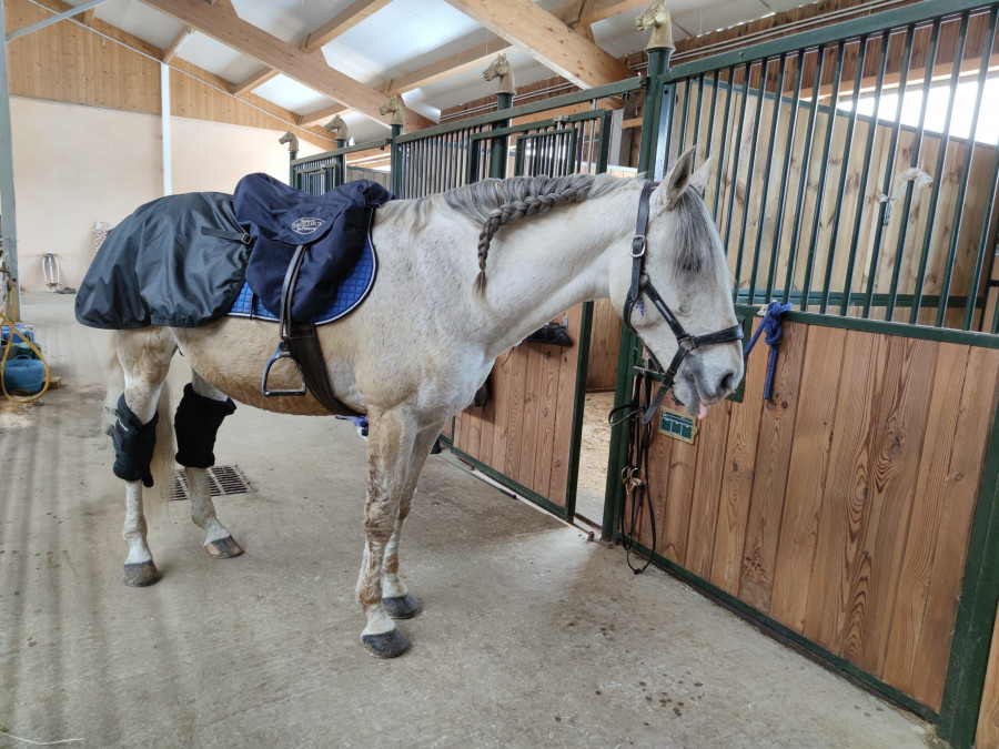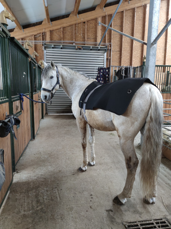 2015 je pars du club et je prends une DP sur une grande ponette pour CSO. Après notre premier concours, jument boiteuse, verdict arthrose, elle ne pourra plus jamais sauter. Bon, des mois de réeducation, je retrouve les plaisirs de monter à cheval juste pour le plaisir, pas pour la compet, et surtout loin des barres.