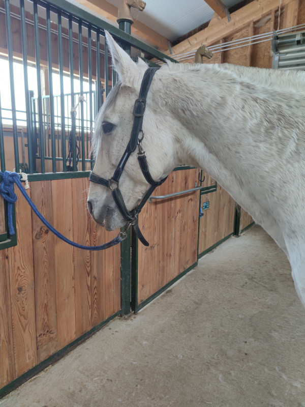 Il est en pension chez sa propriétaire qui est en train de construire une petite écurie de proprio ! Pour le moment pas de carrière sur place mais plusieurs solutions pour monter :