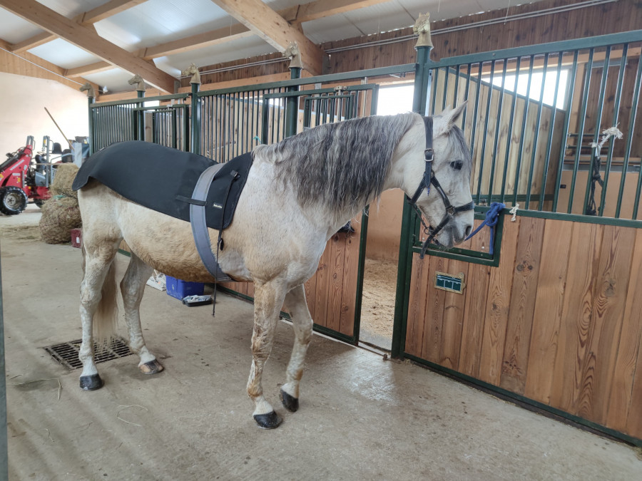 Sur la photo, Zaïro venait de rentrer du pré, sachant qu'on a bien 40cm de neige en ce moment !
