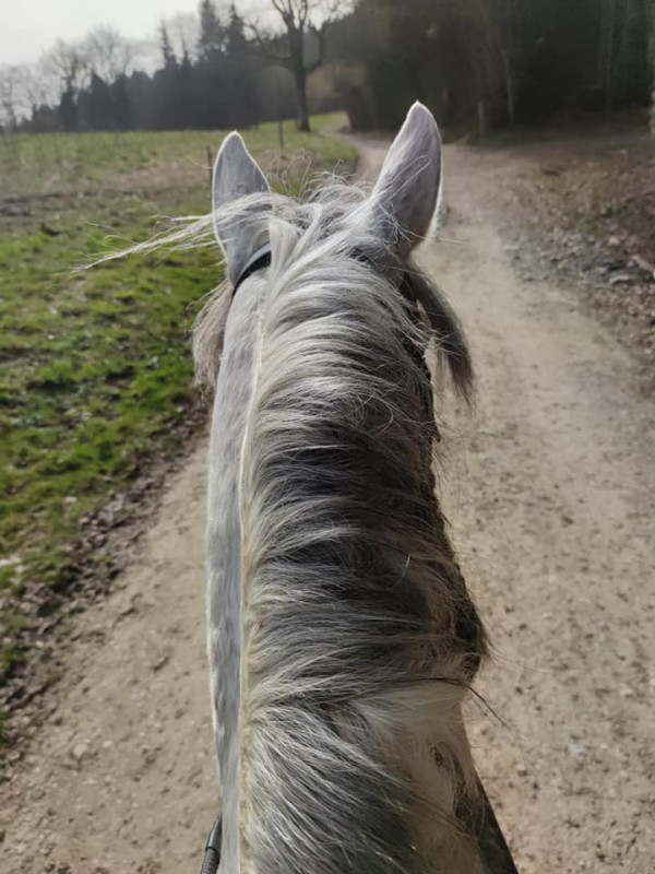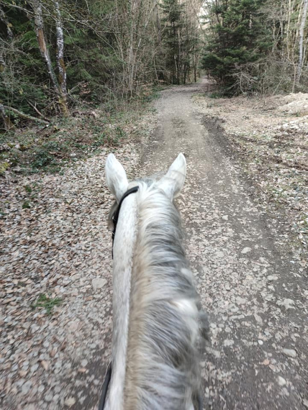 2015 je pars du club et je prends une DP sur une grande ponette pour CSO. Après notre premier concours, jument boiteuse, verdict arthrose, elle ne pourra plus jamais sauter. Bon, des mois de réeducation, je retrouve les plaisirs de monter à cheval juste pour le plaisir, pas pour la compet, et surtout loin des barres.