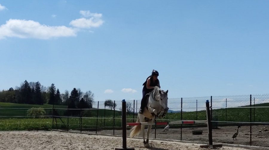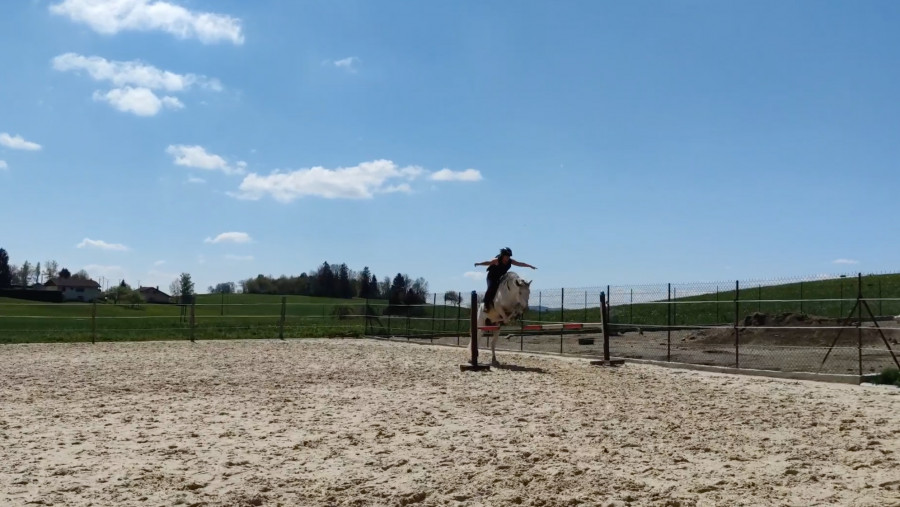 2015 je pars du club et je prends une DP sur une grande ponette pour CSO. Après notre premier concours, jument boiteuse, verdict arthrose, elle ne pourra plus jamais sauter. Bon, des mois de réeducation, je retrouve les plaisirs de monter à cheval juste pour le plaisir, pas pour la compet, et surtout loin des barres.