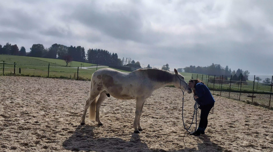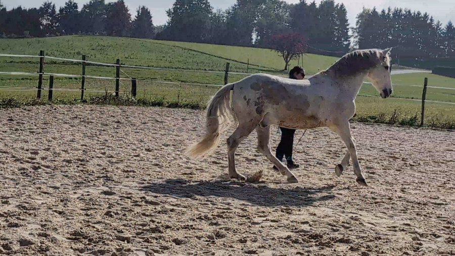 Jument très sensible qui a beaucoup de mal à faire confiance, se décontracter et se laisser aller !