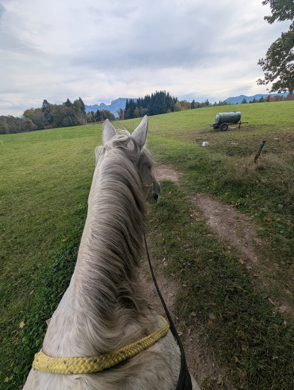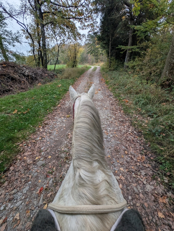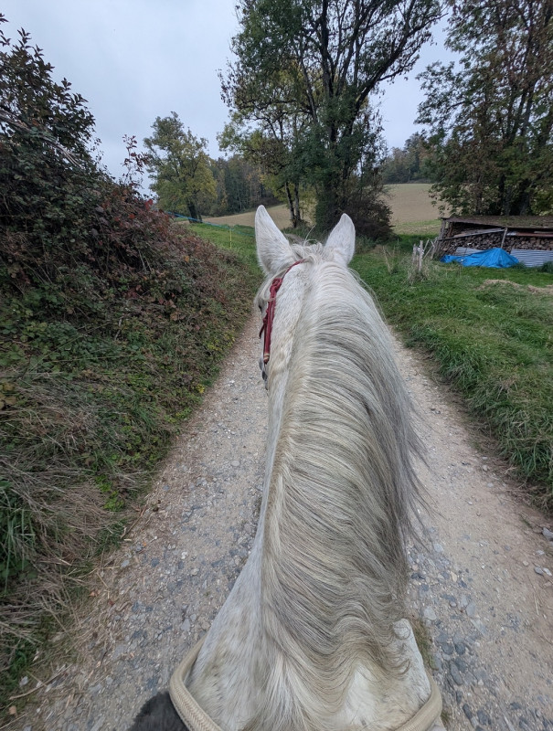 Poney était content de se balader, bon sauf quand je l'empêchait de brouter il tirait la tronche haha