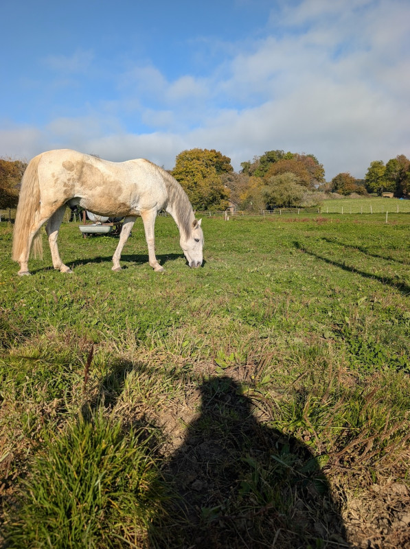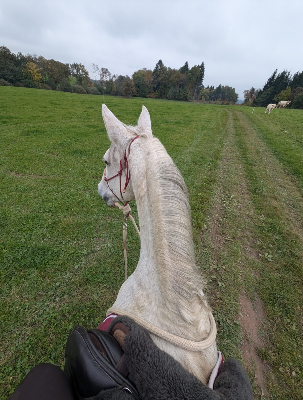 2015 je pars du club et je prends une DP sur une grande ponette pour CSO. Après notre premier concours, jument boiteuse, verdict arthrose, elle ne pourra plus jamais sauter. Bon, des mois de réeducation, je retrouve les plaisirs de monter à cheval juste pour le plaisir, pas pour la compet, et surtout loin des barres.
