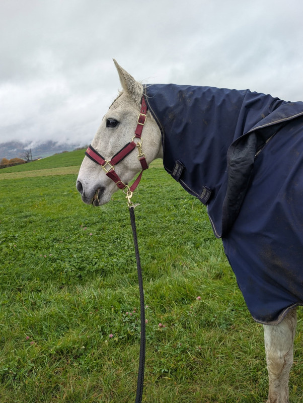 On commence par un bon pansage car j'ai retrouvé mon super poney en mode sanglier et j'ai refait des tresses pour éviter d'abimer les crins avec la boue puis j'ai mis la couverture céramique !