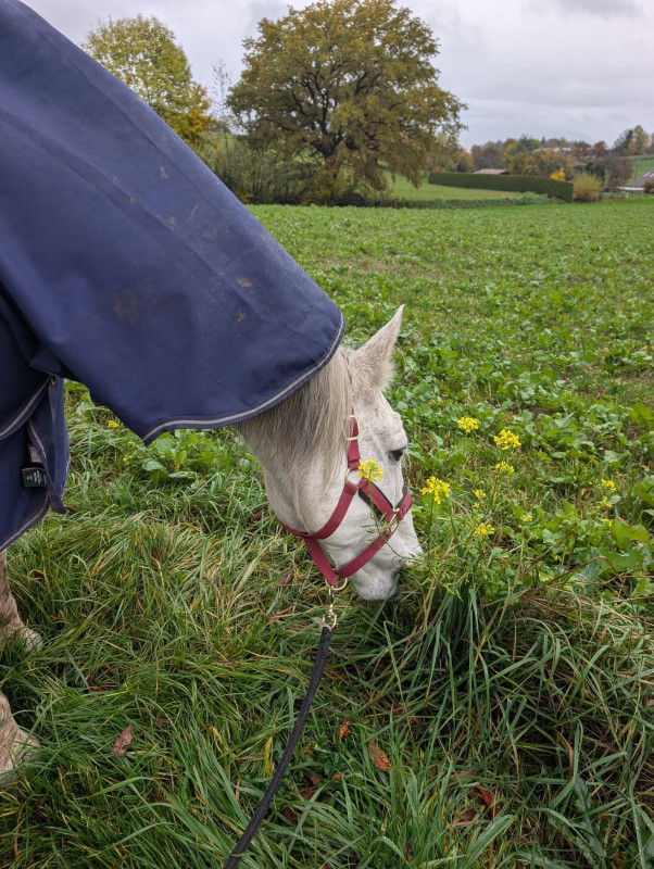 En attendant l'arrivée d'Anne So, j'ai tenté d'aller faire marcher Zouzou et brouter un peu ... Échec on s'est pris le déluge au bout de 8 minutes