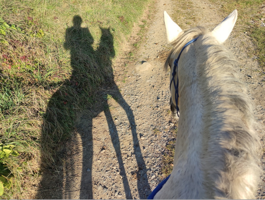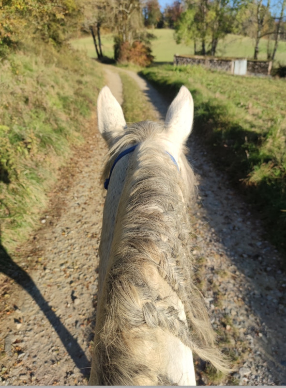 Bon cette fois je n'ai pas longé avant vu sa toux j'ai préféré marcher longtemps plutôt qu'aller "rapidement" au trot et au galop à la longe avant de monter !