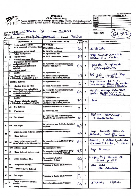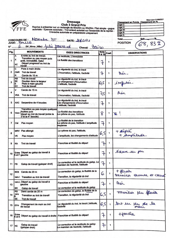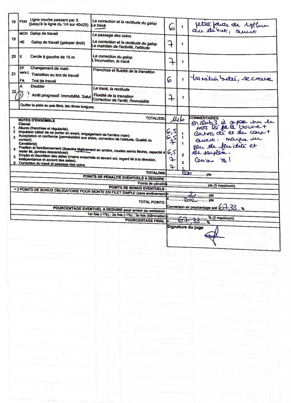 Je compatis pour ton dos en club2, pas évident... Mais bravo pour ta notation vu le contexte ! Elle ne peut pas faire un ajustement vs la fédé en autorisant le trot enlevé ? Surtout pour du club quoi