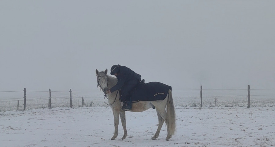 J'ai l'impression qu'avec le blizzard de temps en temps tu repars un peu en avant, moins centrée. Mais je ne vois pas qui pourrait te le reprocher, moi je serais en hérisson, en boule sur ma selle :'D