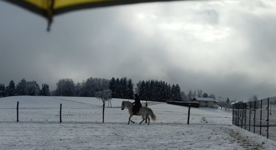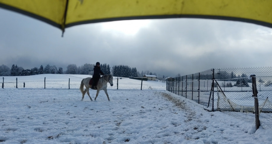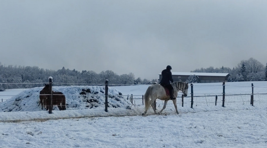 Je récupère ponito au pré, bon il s'est roulé dans la neige le coquin
