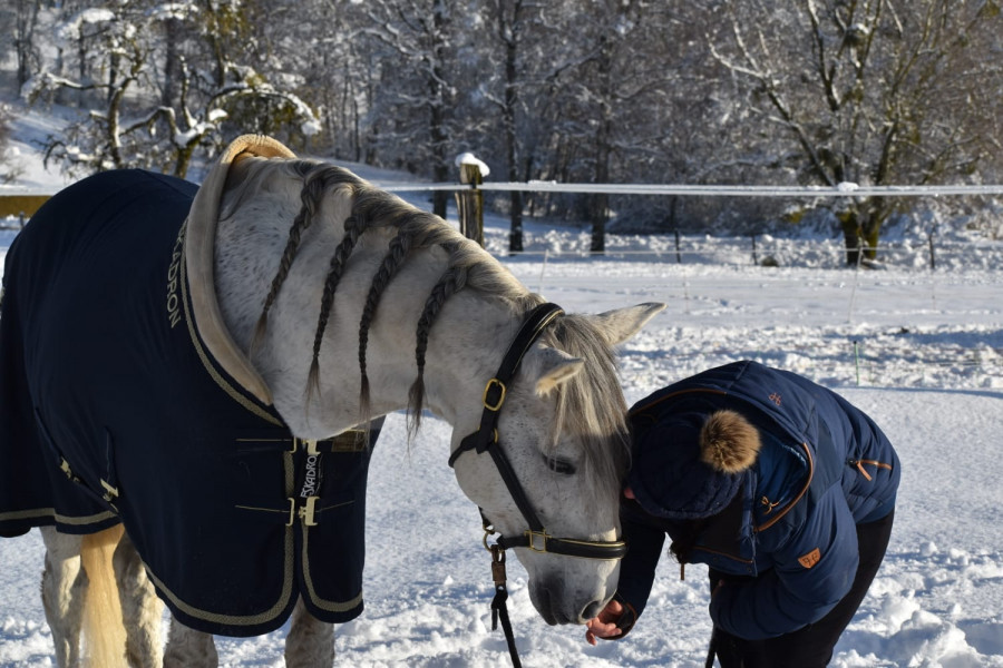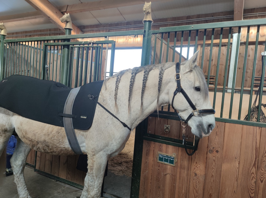 On remet le chauffe dos et un peu d'étirement des membres et de l'encolure ! Il a très très bien fait petit chat !