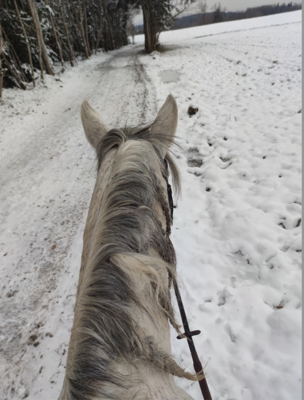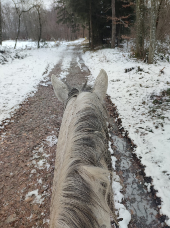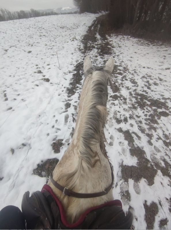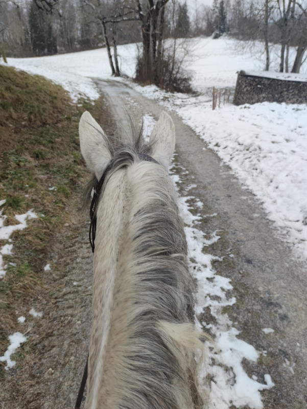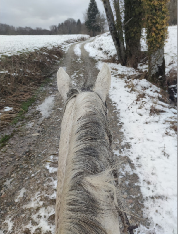 Poney a été topissime, super sage, calme, j'ai passé tout le temps au pas avec les rênes posées sur l'encolure, le trot rênes longues et le galop rênes ajustées mais quasiment pas tendues