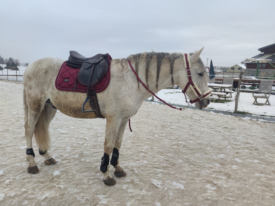 2015 je pars du club et je prends une DP sur une grande ponette pour CSO. Après notre premier concours, jument boiteuse, verdict arthrose, elle ne pourra plus jamais sauter. Bon, des mois de réeducation, je retrouve les plaisirs de monter à cheval juste pour le plaisir, pas pour la compet, et surtout loin des barres.
