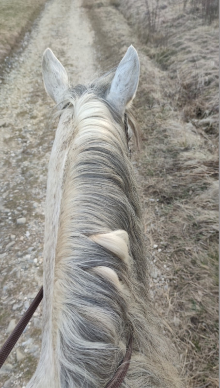 2015 je pars du club et je prends une DP sur une grande ponette pour CSO. Après notre premier concours, jument boiteuse, verdict arthrose, elle ne pourra plus jamais sauter. Bon, des mois de réeducation, je retrouve les plaisirs de monter à cheval juste pour le plaisir, pas pour la compet, et surtout loin des barres.