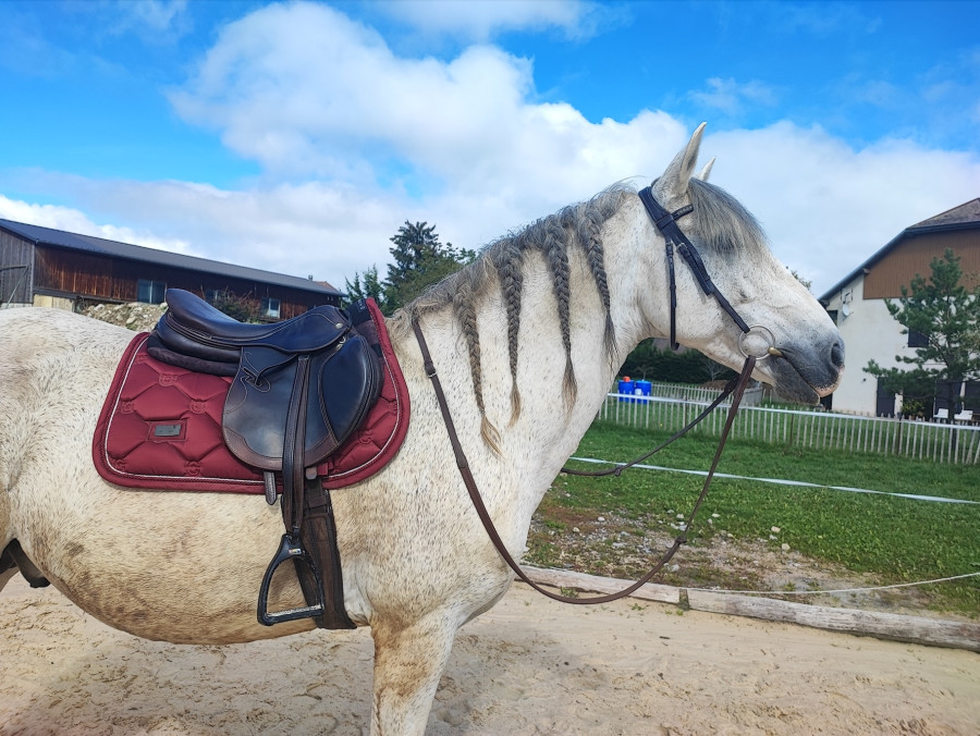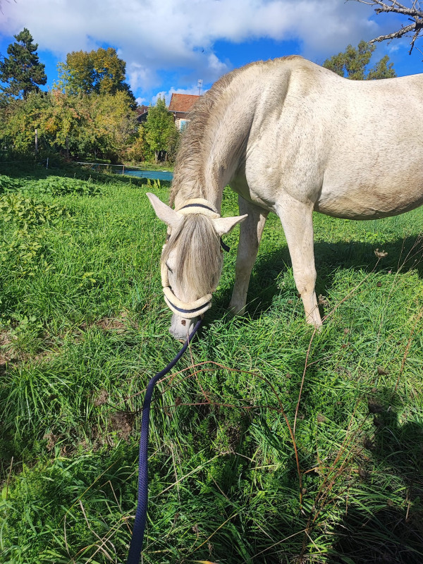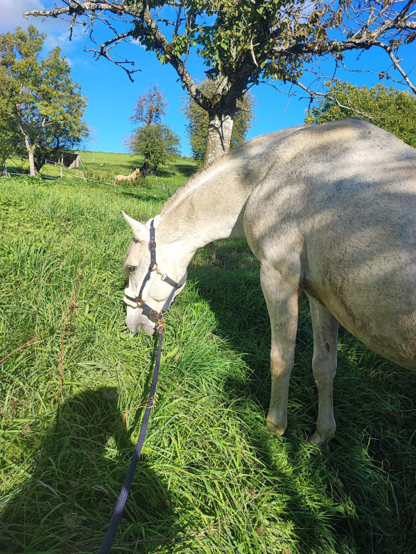 2015 je pars du club et je prends une DP sur une grande ponette pour CSO. Après notre premier concours, jument boiteuse, verdict arthrose, elle ne pourra plus jamais sauter. Bon, des mois de réeducation, je retrouve les plaisirs de monter à cheval juste pour le plaisir, pas pour la compet, et surtout loin des barres.