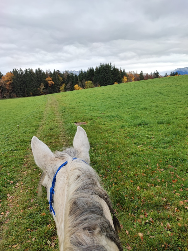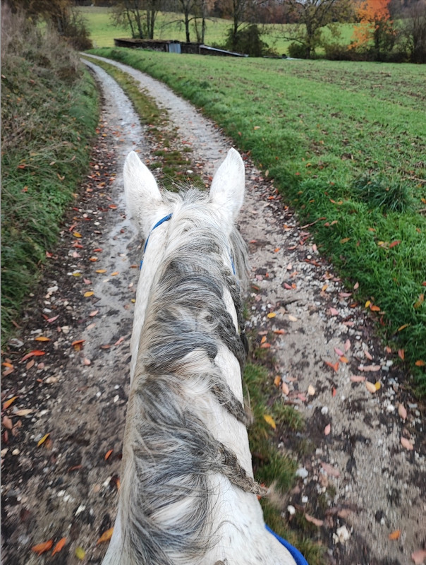 2015 je pars du club et je prends une DP sur une grande ponette pour CSO. Après notre premier concours, jument boiteuse, verdict arthrose, elle ne pourra plus jamais sauter. Bon, des mois de réeducation, je retrouve les plaisirs de monter à cheval juste pour le plaisir, pas pour la compet, et surtout loin des barres.