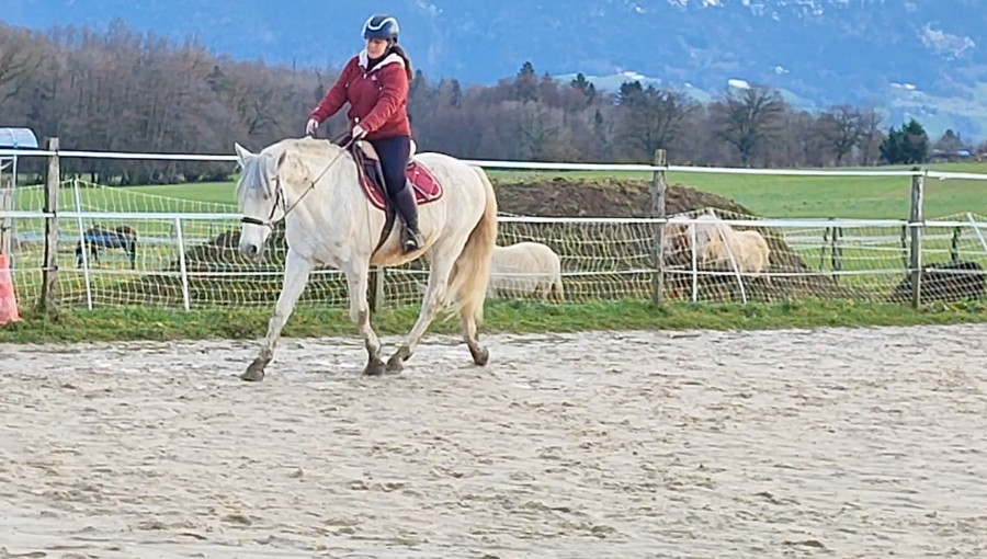 Détente au pas en extension sur des grandes courbes puis go 2 pistes avec EED, travers, cessions et appuyers, eh bien j'étais assez contente il a été chouette