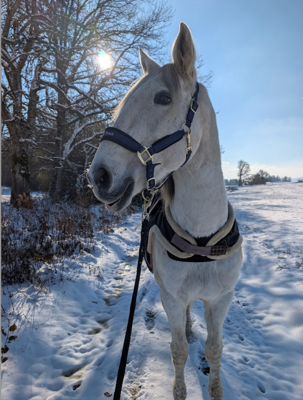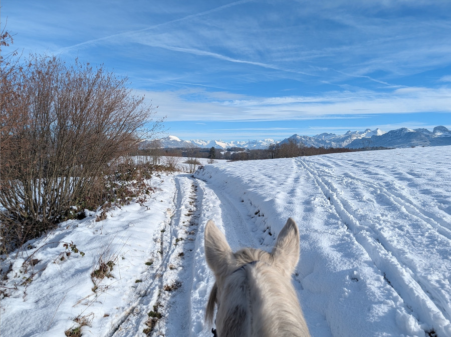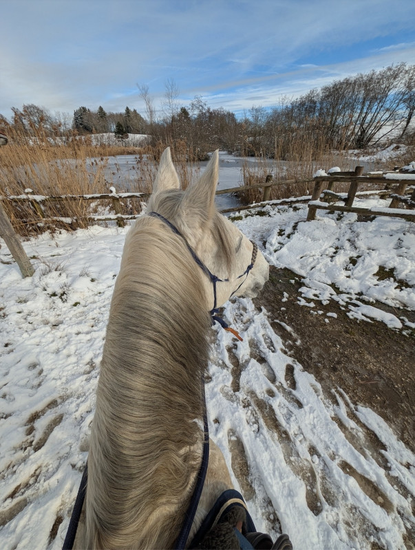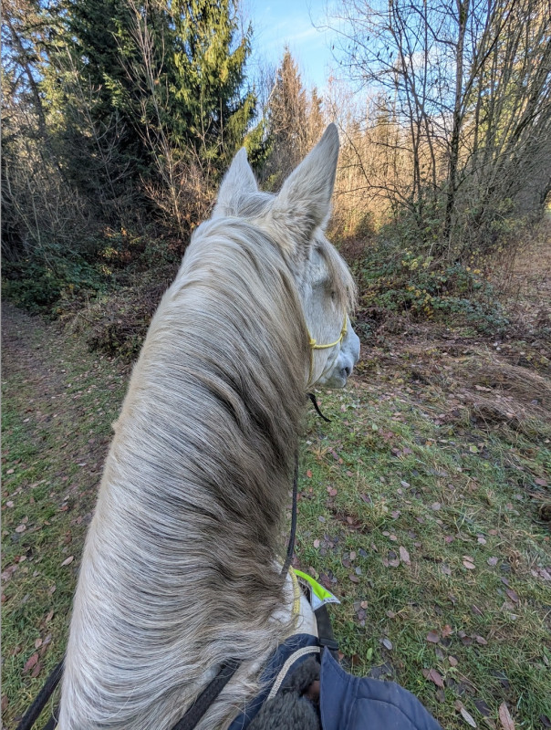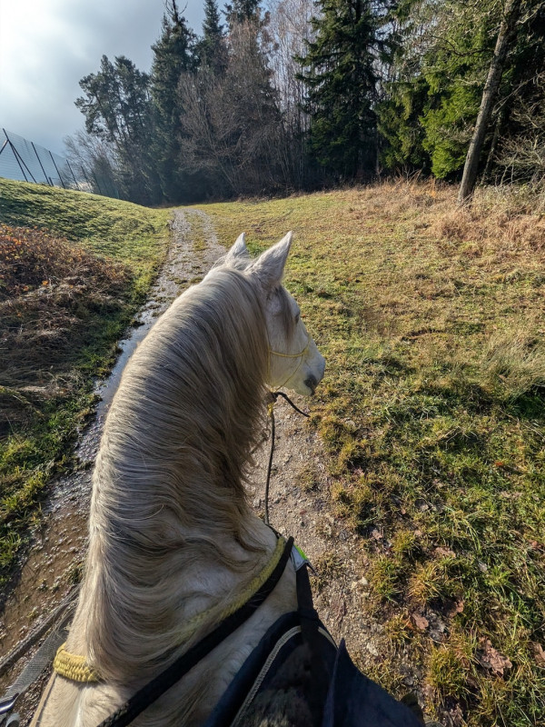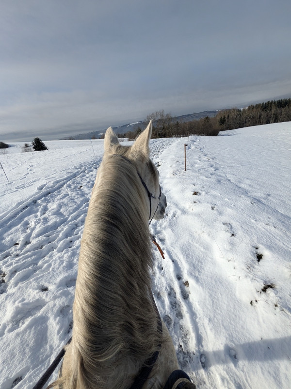 Du coup reste de la balade on a fait du pas et pas mal de trot ça nous a bien réchauffés ! Le tout en extension pour bosser ce petit dos ! Il a été top ! Bon a des moments il prenait le galop au lieu du trot mais à des moments il m'a sorti un trot de fou