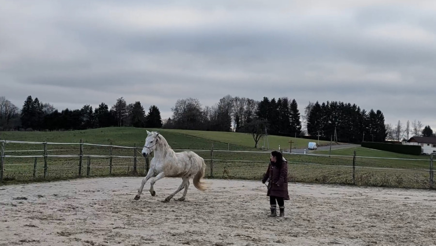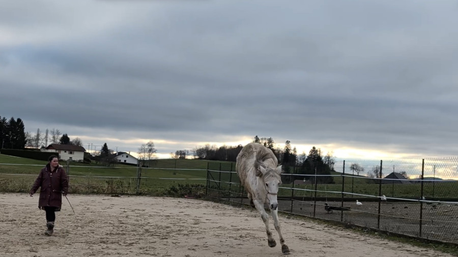 Ensuite au trot et au galop juste des grands cercles et des transitions en essayant d'avoir l'extension, comme d'hab c'est pas stable mais quand même des jolis moments