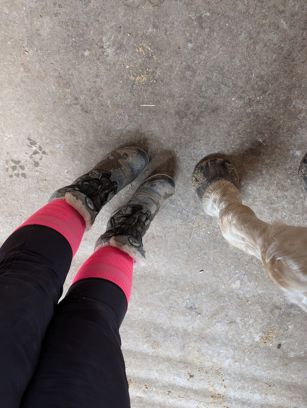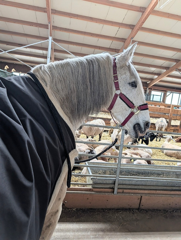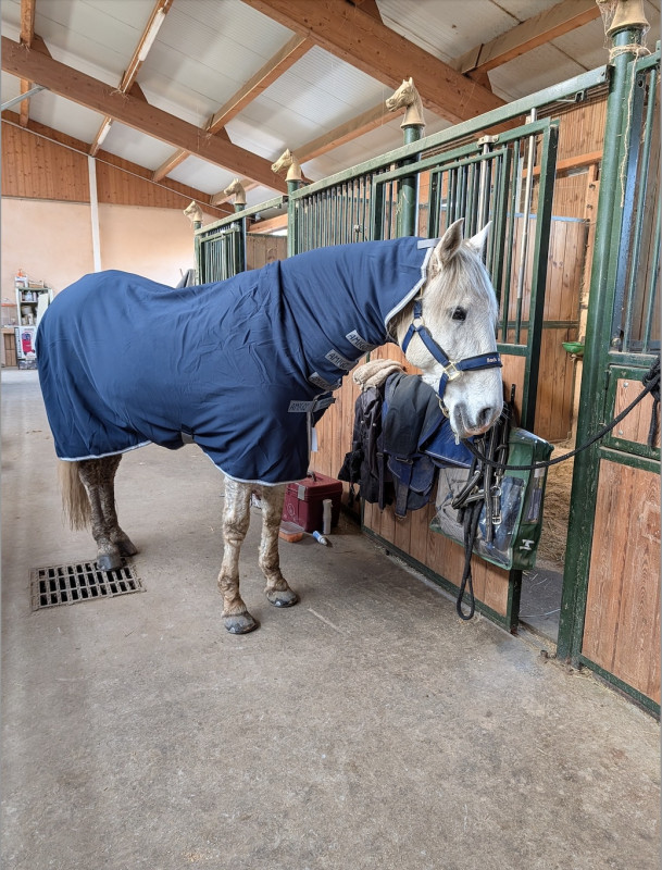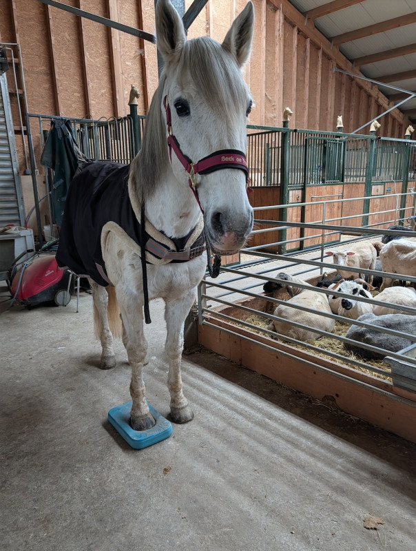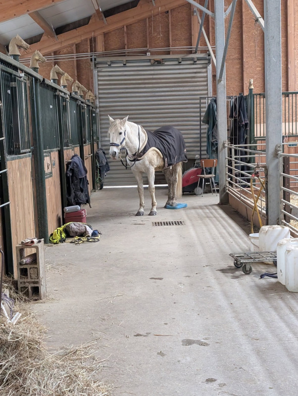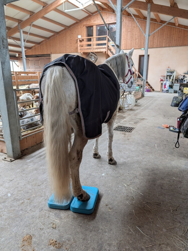 Retour aux écuries, on a fait un peu de pad mais juste poser les pieds dessus sans rien faire ! Les postérieurs y'a zéro soucis, j'ai même du moi même l'enlever au bout de 5 minutes par pied mdr