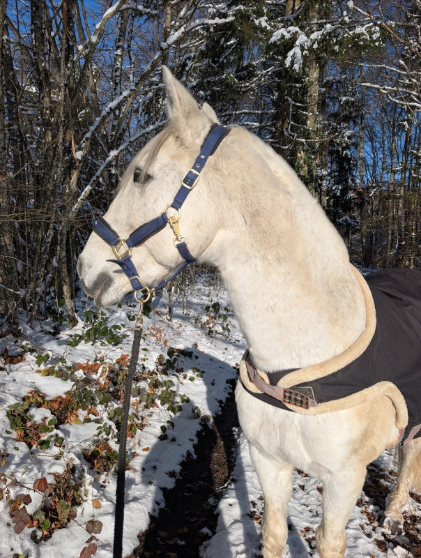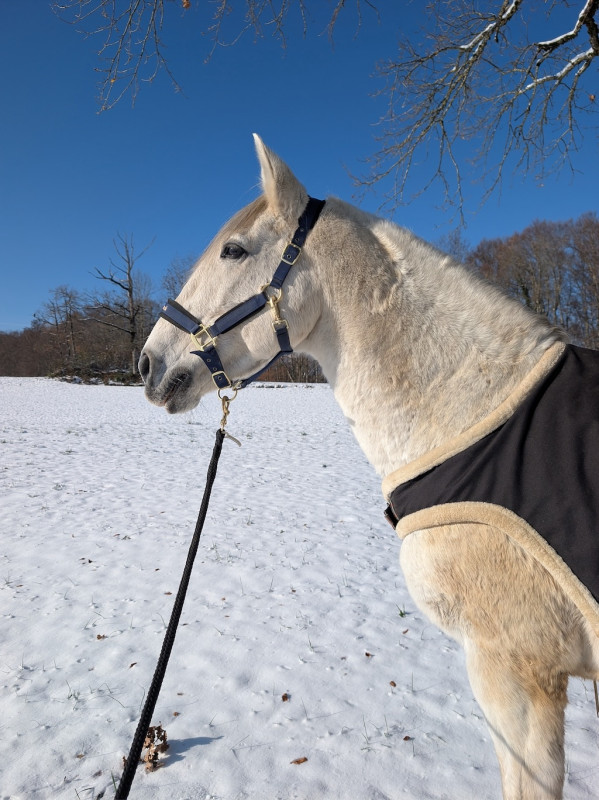 2015 je pars du club et je prends une DP sur une grande ponette pour CSO. Après notre premier concours, jument boiteuse, verdict arthrose, elle ne pourra plus jamais sauter. Bon, des mois de réeducation, je retrouve les plaisirs de monter à cheval juste pour le plaisir, pas pour la compet, et surtout loin des barres.