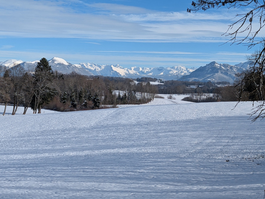 Bon on a fait quasiment que du pas car déjà il fait moins de 5° et en plus à part quelques chemins encore bien enneigés, la plupart étaient quand même bien gelés/glissants !