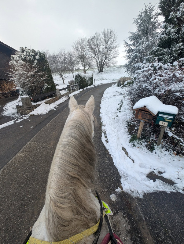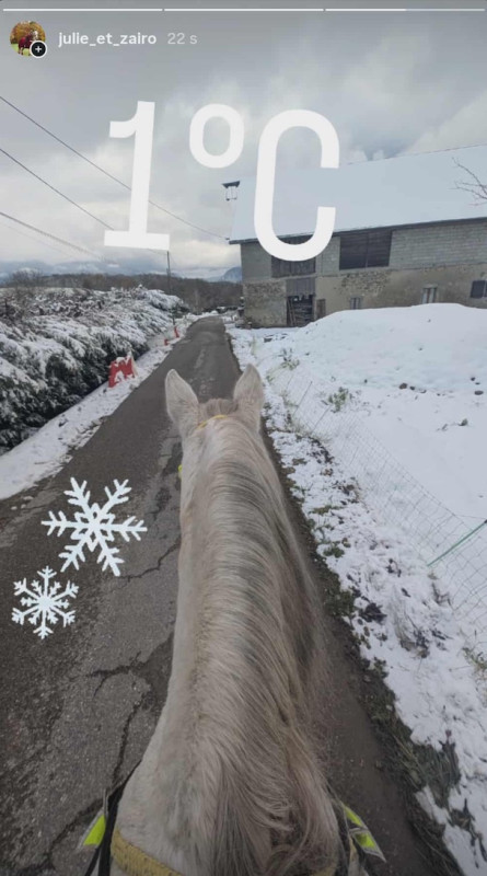 Premier galop il part comme un neuneu mais une petite toux quand on repasse au pas et là mon cerveau tilte : il fait 3 degrés donc faut pas ou très peu galoper oups sorry Zouzou et merci pour le rappel à l'ordre !