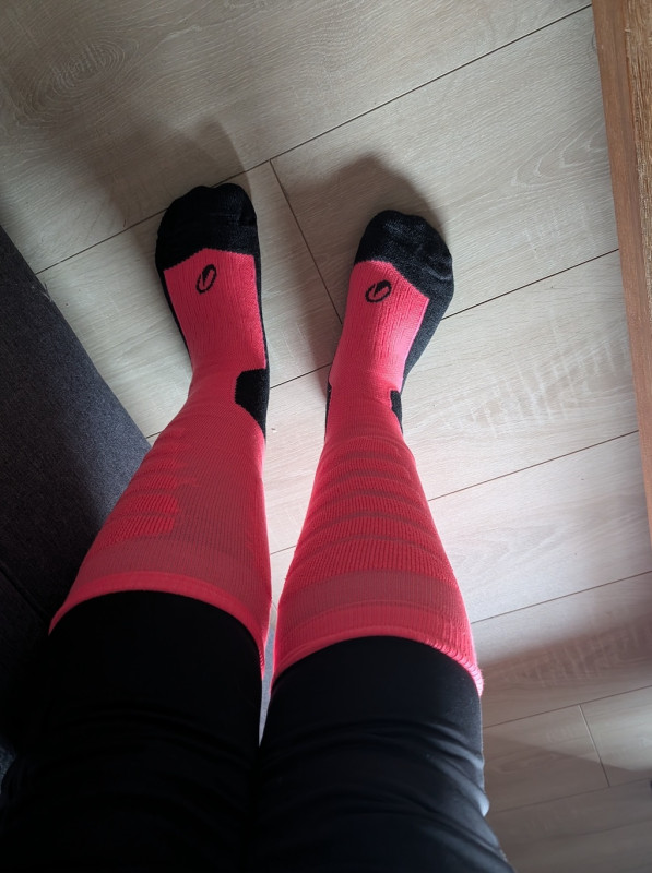 Et pensées à celles qui kiffent le fluo, j'ai été m'acheter des chaussettes de ski rose fluo à decath hier