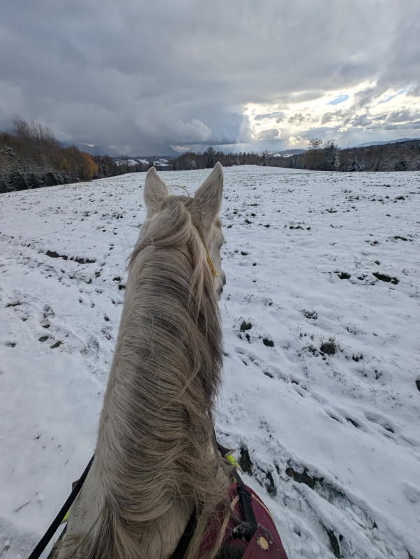 Par contre je sais pas si c'est parce que j'étais crispée avec le froid, la peur de glisser ou la fatigue du moment mais j'ai du finir à pied, j'en pouvais plus j'avais des douleurs horribles aux ischions je tenais assise plus en selle et le dos bloqué