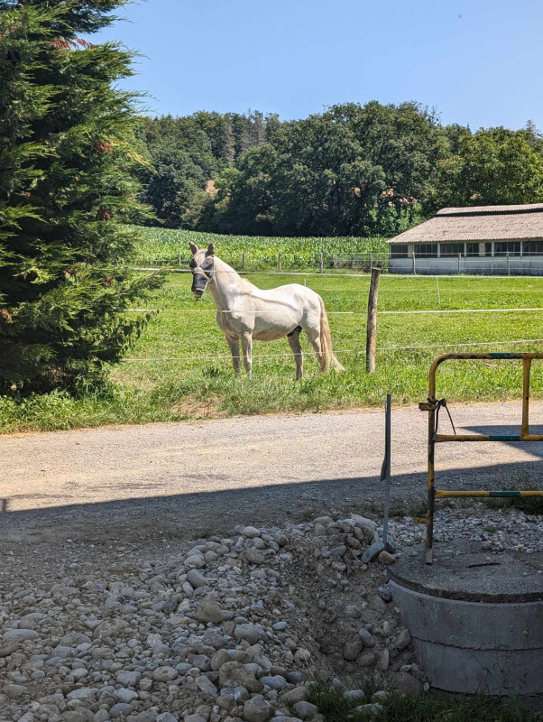 Il est en pension chez sa propriétaire qui est en train de construire une petite écurie de proprio ! Pour le moment pas de carrière sur place mais plusieurs solutions pour monter :