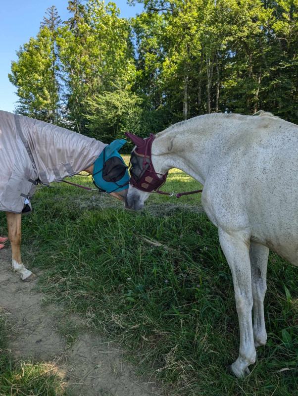 Du coup retour aux écuries le temps que ça se calme, massage du bidou, gamelle et retour au pré pour mon amour