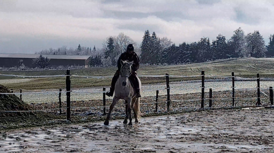 On a fait beaucoup de pas et un peu de trot, mais pas de galop car il fait trop froid pour galoper pour les poumons ...