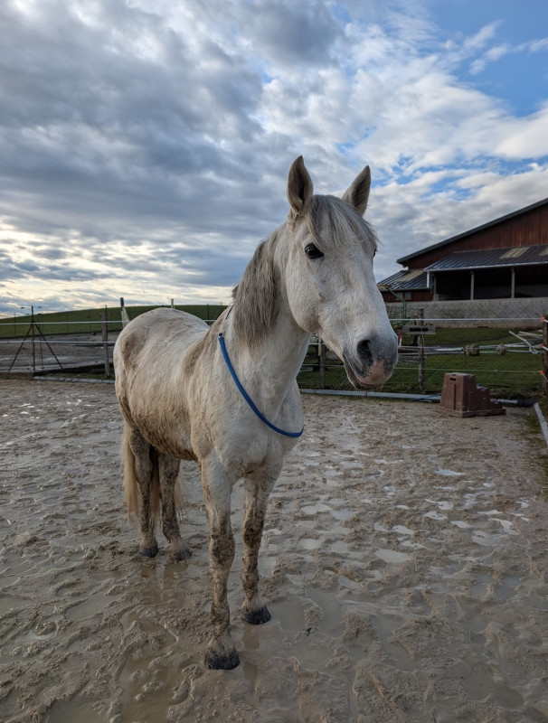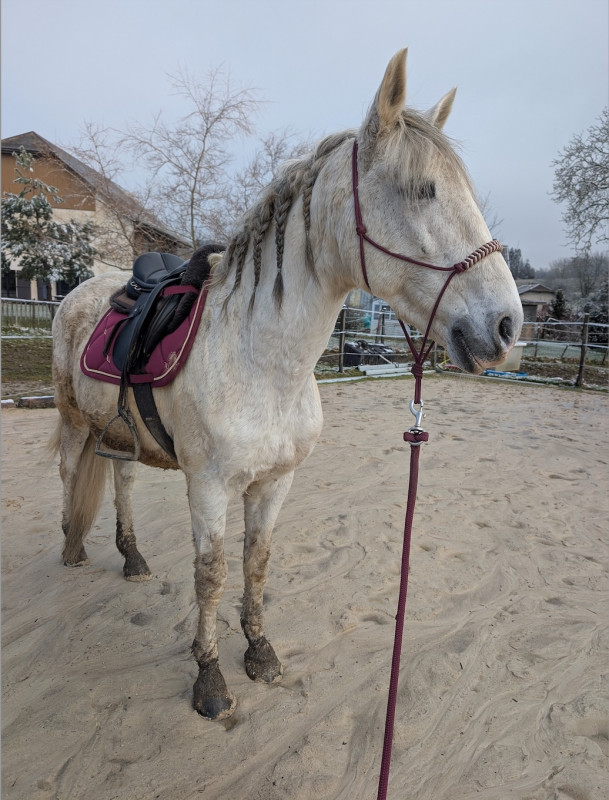Il est en pension chez sa propriétaire qui est en train de construire une petite écurie de proprio ! Pour le moment pas de carrière sur place mais plusieurs solutions pour monter :